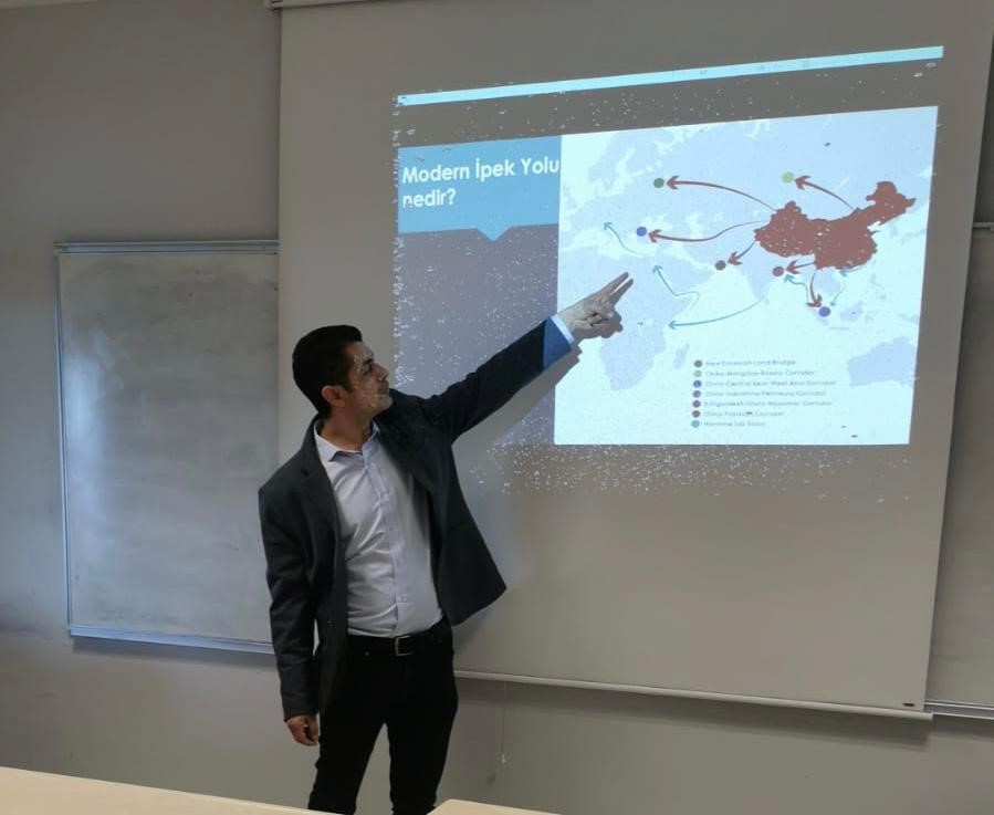 Avrasya Üniversitesi, İktisadi ve İdari Bilimler Fakültesi, Uluslararası İlişkiler Bölüm Başkanı Dr. Öğr. Üyesi Emrah YILDIRIMÇAKAR tarafından, 27 Ocak 2024 Tarihinde Avrasya Üniversitesi Pelitli yerleşkesi, D-07 Dersliğinde düzenlenen, Modern İpek Yolu’nun güncel durumu hakkında bilgi edinmek ve Türkiye’nin bu projedeki önemini anlamak konulu,¨Modern İpekyolu Projesinde Türkiye’nin Konumu¨ başlıklı etkinliğimize, etkinlik saatinde dersi olmayan Siyaset Bilim ve Kamu Yönetimi Bölümü Öğrencileri katılım sağlamıştır.