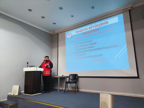 Sunumlar, Trabzon Büyükşehir Belediyesi’nde görevli veteriner hekim ile Trabzon Hayvanları Koruma ve İçeriğini Yaşatma Derneği (TRAHAYKO) Başkanı tarafından gerçekleştirilmiş olup, öğrencilerimiz konuya ilişkin doğrudan uzman görüşlerini dinleme fırsatı bulmuştur. Etkinlik sonunda, hayvanlara yönelik sevgi, saygı ve sorumluluk temelli bir bakış açısı kazandırılması hedeflenmiştir.