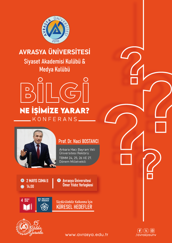 Avrasya Üniversitesi İktisadi ve İdari Bilimler Fakültesi bünyesinde faaliyet gösteren Siyaset Akademisi Liderlik Okulu Kulübü ile İletişim Fakültesi bünyesinde çalışmalarını sürdüren Medya Kulübü iş birliğiyle “Bilgi Ne İşimize Yarar?” başlıklı anlamlı bir etkinlik düzenlenmiştir.